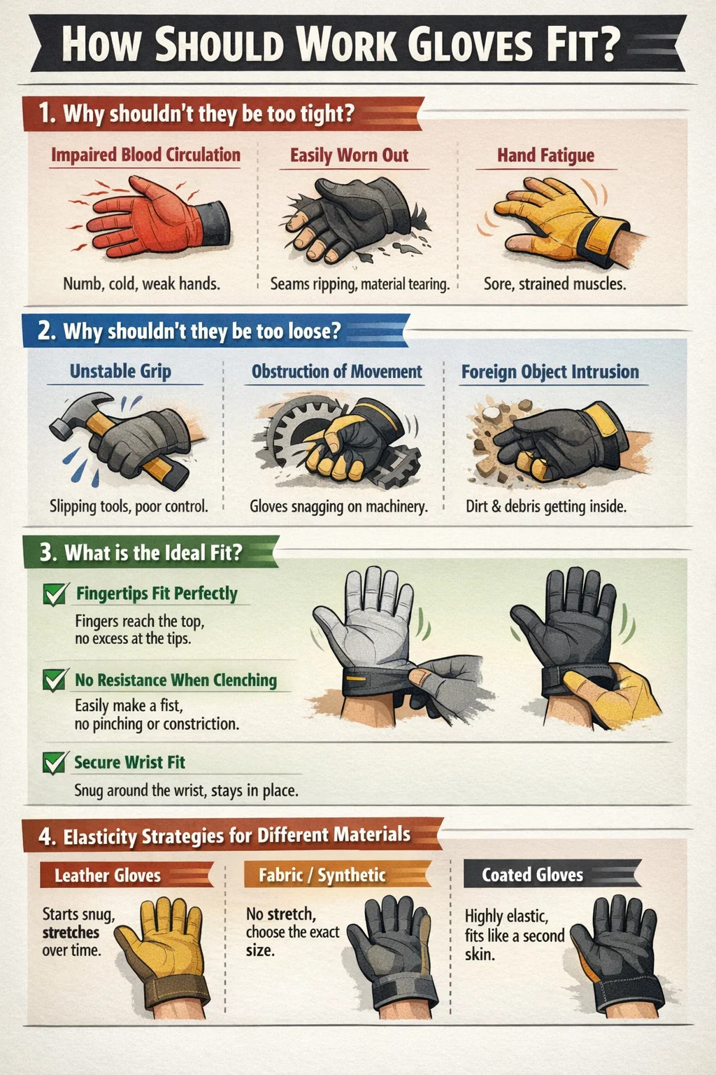 این سوال که آیا دستکش کار باید تنگ باشد یا گشاد در واقع بسیار مهم است. به زبان ساده، آنها باید مانند "پوست دوم" قرار گیرند، اما مطلقاً دستان شما را منقبض نکنند.